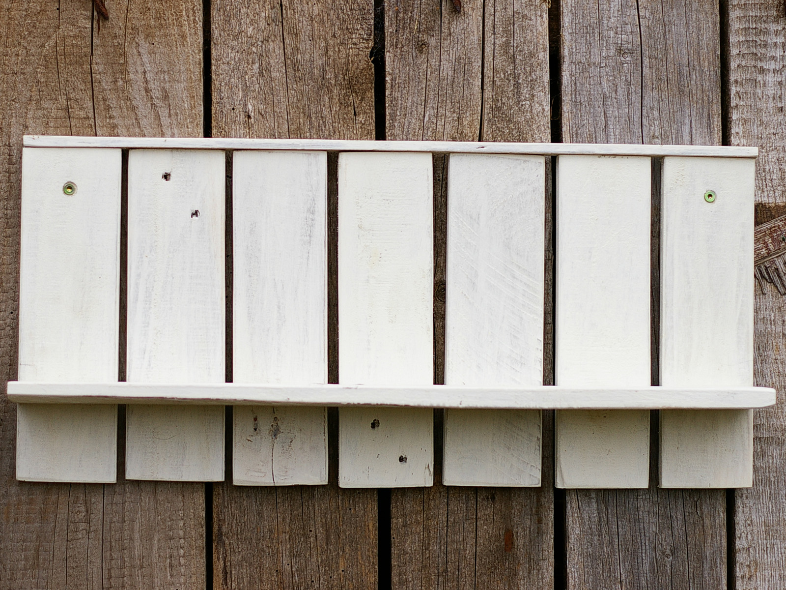 Ein schlichtes Regal, dass wir mit Kalkfarben weiß angemalt und mit passendem Wachs fixiert haben.